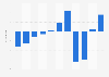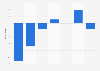 The revenue change in the 'Laptops' segment of the consumer electronics market worldwide was modeled to be ***** percent in 2024. From 2019 to 2024, the revenue change rose by **** percentage points, though the increase followed an uneven trajectory rather than a consistent upward trend. Between 2024 and 2030, the revenue change will rise by **** percentage points, showing an overall upward trend with periodic ups and downs.